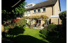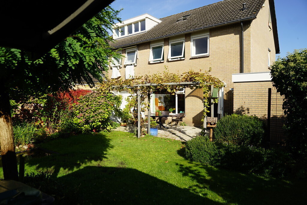 Besloten tuin, gelegen op het zuiden. Tuinhuisje. De garage en berging met o.a. drie fietsen, waarvan 2 electrisch.