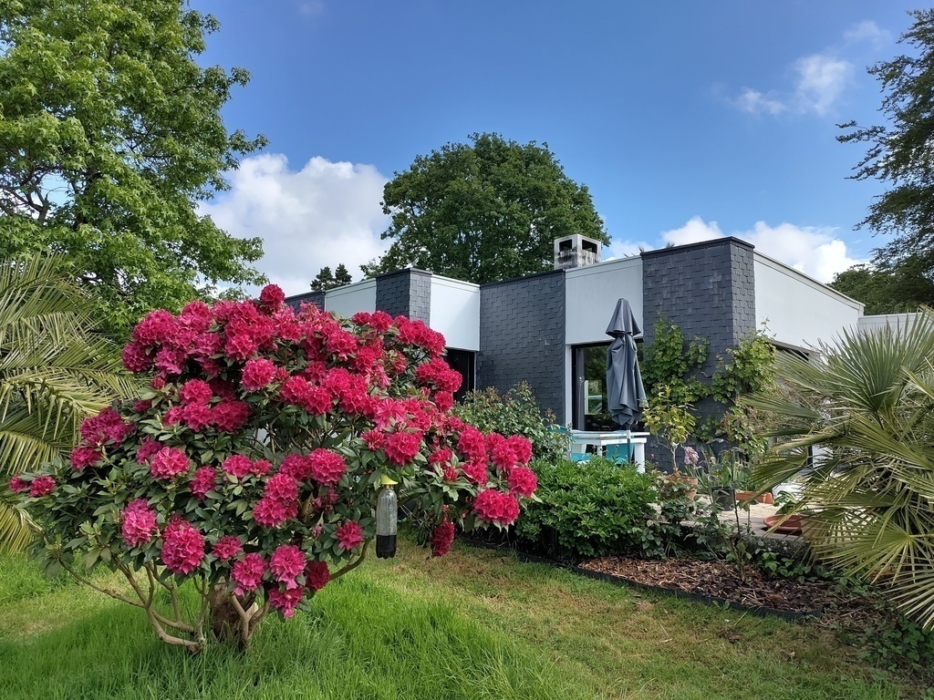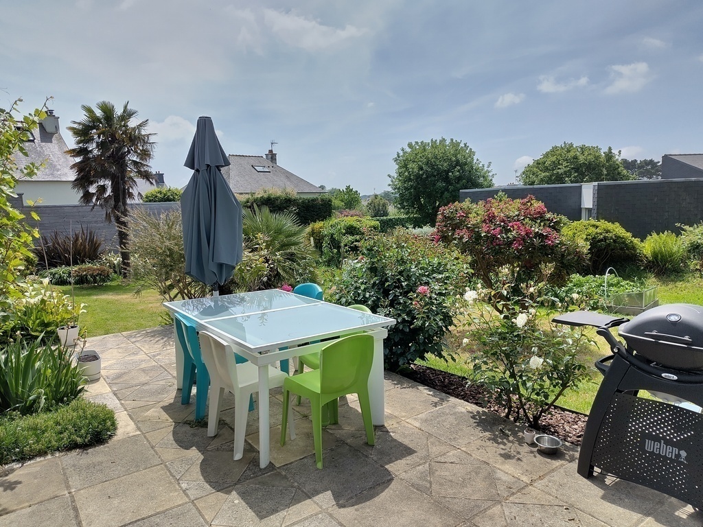 Notre maison se trouve dans une impasse près du centre ville de Lannion. De plain-pied, elle s'articule autour d'un jardin arboré et fleuri qui change de couleurs au gré des saisons.