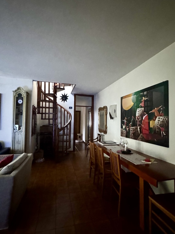 La casa, di proprietà, è un appartamento di 160 metri su due livelli posto al terzo piano di un condominio di 12 appartamenti con un grande giardino vicinissimo al centro città.